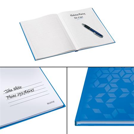 Beíró, A4, vonalas, 80 lap, keményfedeles, LEITZ "Wow", kék